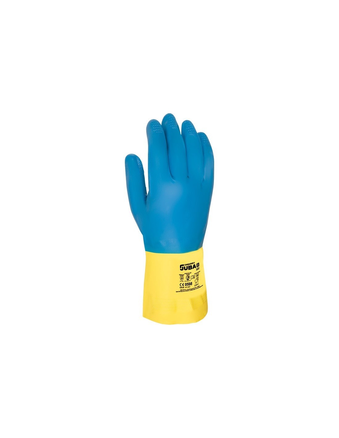 Guante sin soporte bicolor de neopreno sobre látex flocado ligero. Características