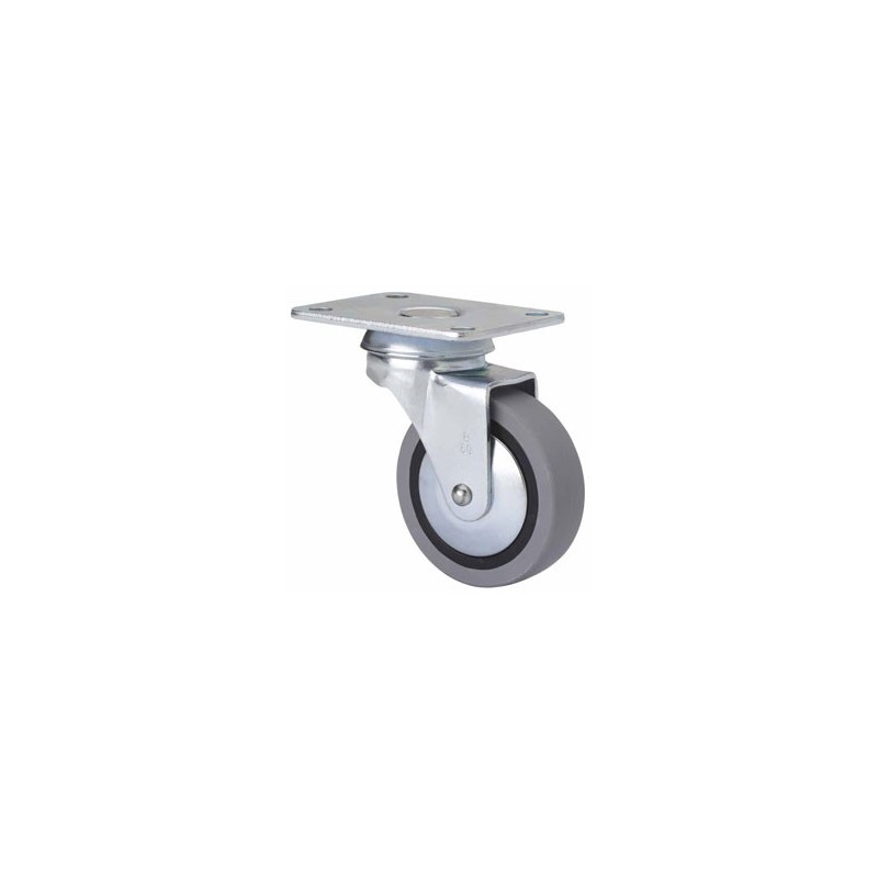 RUEDA B-PGI CON PLACA SUPERIOR Fabricada con chapa de acero embutida hasta 2 mm de espesor. Soporte con doble rodamiento a bolas.